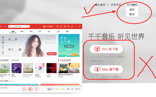 2、点击右上角的‘千千静听’选择语言就可以下载了