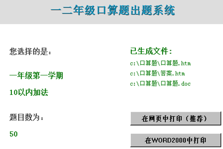 口算能力的训练,有助于培养学生敏锐的观察力、综合思维能力、快速反应能力。这款工具大大减少了老师们的出题负担,可以快速的打印不同的训练题目。