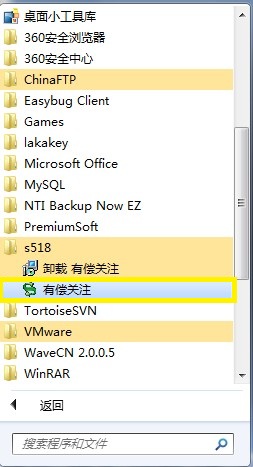 首先在桌面或者开始程序中找到“有偿关注”图标(如图2、图3)。