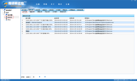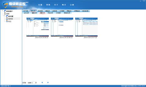 5)屏幕监控记录。该功能配合后面的“被控端设置”中的“屏幕记录配置”使用。在“屏幕记录配置”设置中设置屏幕截图的间隔时间,然后软件会按设置自动截图并保存屏幕截图记录到“屏幕记录”下。管理者可以最快的大致了解员工是否在工作时间做工作以外的事情。