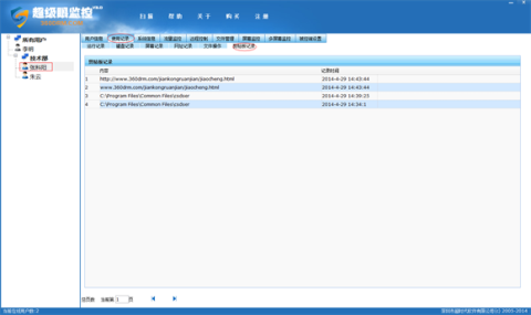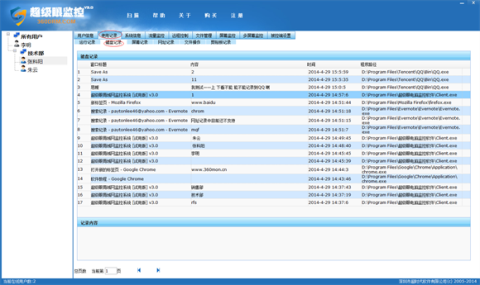 4)键盘监控记录。该功能可以记录员工电脑所有键入的内容,包括各种聊天记录(目前版本只能监控到被控电脑发出去的,不含接收到的。),邮件记录(同聊天记录,只能监控到被控电脑发出去的。),文档输入记录,用户名密码输入记录等等所有键盘输入记录。除了记录键入内容外,还可以记录程序窗口标题、内容发送的时间以及使用的程序的路径。