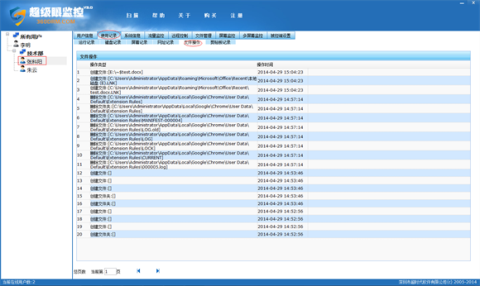 7)文件操作记录。该记录会将员工对电脑上的文件操作详细记录下来,包括员工电脑新建、修改、删除文件的操作类型以及操作时间和文件路径,所有记录一清二楚,以便管理者对重要文件进行追踪。