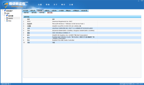 12)查看硬件信息。可以查看员工电脑硬件信息如型号、处理器、主板、声卡、显示、光驱等。为公司IT部门维护更新公司电脑配置提供便利。