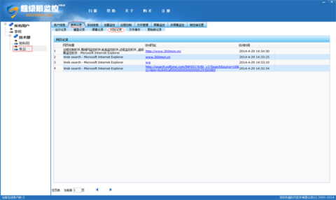 6)网址访问记录。该功能会将员工电脑所有访问的网址记录下来,管理者可以轻松知道员工访问了哪些网站,并有网站标题、网址和访问时间方便判断和跟踪。