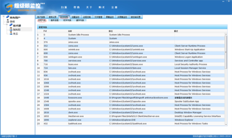9)进程监控。可以轻松查看员工电脑当前运行所有进程,包含进程名称、路径和进行描述。