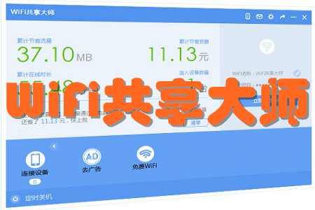 wifi共享大师软件是一款非常给力的WiFi共享软件。可以轻松在有无线网卡的电脑上直接创建免费的WiFi网络了,手机、平板电脑等便携设备就可以直接连接这个免费的WiFi网络,享受上网冲浪带来的乐趣!