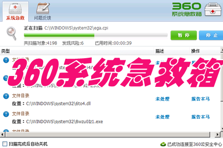 360系统急救箱为电脑用户们提供了十分方便的系统监测功能,能够有效的修复电脑死机、蓝屏、卡顿等情况。清理顽固木马和有毒文件夹等等,拯救系统崩溃!